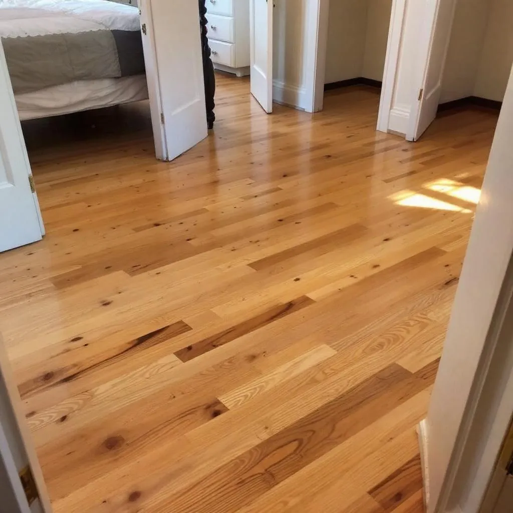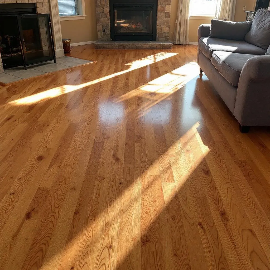 Scratches that catch the light from every angle. The orangey builder-grade finish that looked fine when you moved in but now makes the whole room feel dated. Boards that have faded unevenly near windows. A bathroom or kitchen spot where water got in and the finish is cloudy or peeling.
